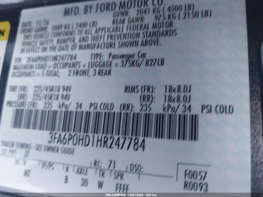 2017 FORD FUSION SE