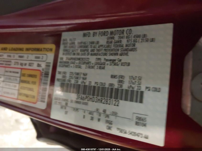 2017 FORD FUSION 2017 року Бензин, 1.5, Передній привід, vin - 3FA6P0HD3HR283122 з США