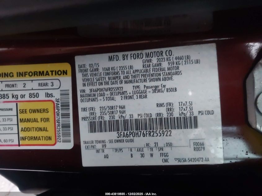 2015 FORD FUSION 2015 року Бензин, 2.5, Передній привід, vin - 3FA6P0H76FR255922 з США