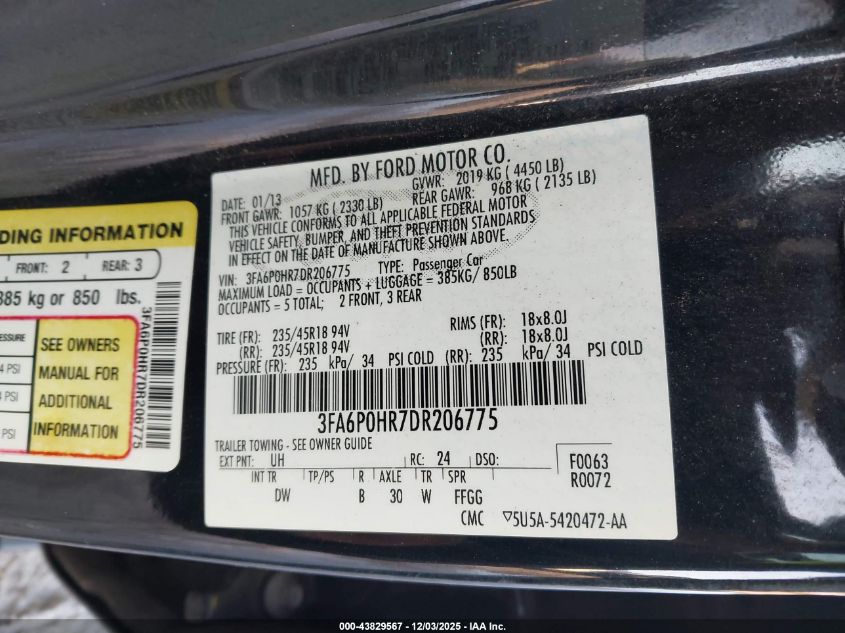 2013 FORD FUSION 2013 року Бензин, 1.6, Передній привід, vin - 3FA6P0HR7DR206775 з США