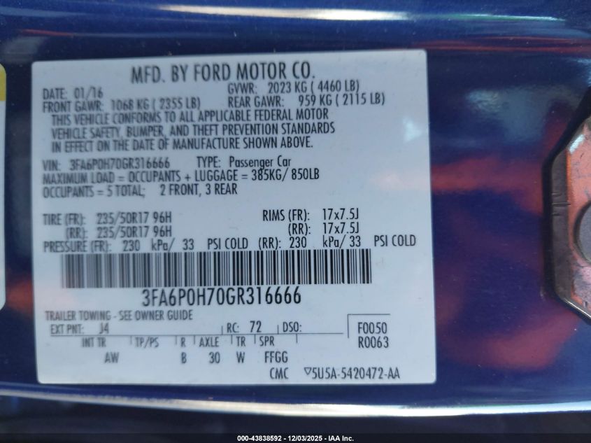 2016 FORD FUSION 2016 року Бензин, 2.5, Передній привід, vin - 3FA6P0H70GR316666 з США
