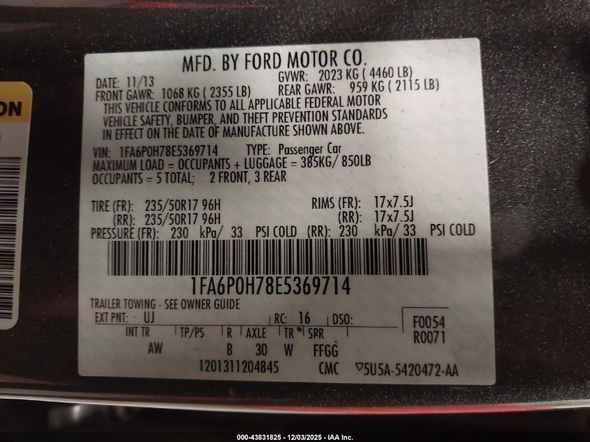 2014 FORD FUSION 2014 року Бензин, 2.5, Передній привід, vin - 1FA6P0H78E5369714 з США