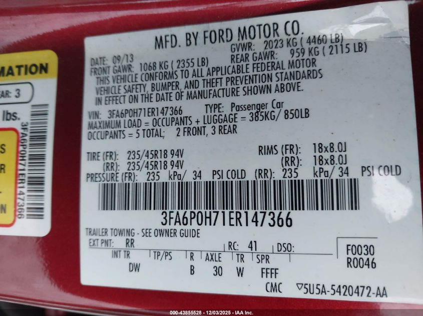 Колір БургундіяЦиліндри 4Привід Передній привідVIN 3FA6P0H71ER147366Стан Заводиться та їде (перевірено)Ушкодження Передня права AutoRIA
