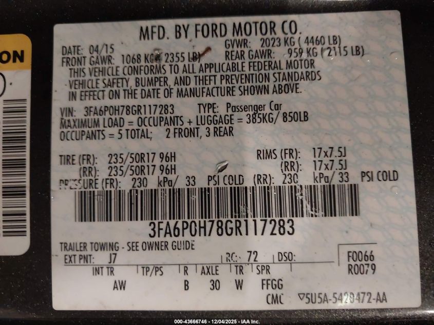 2016 FORD FUSION 2016 року Бензин, 2.5, Передній привід, vin - 3FA6P0H78GR117283 з США
