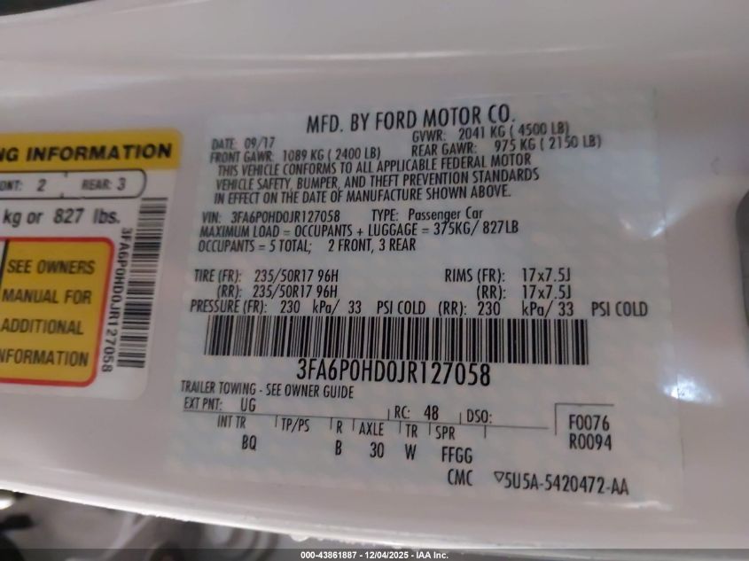 2018 FORD FUSION 2018 року Бензин, 1.5, Передній привід, vin - 3FA6P0HD0JR127058 з США
