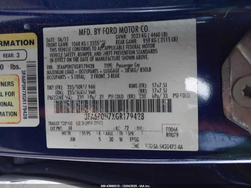 2016 FORD FUSION 2016 року Бензин, 2.5, Передній привід, vin - 3FA6P0H7XGR179428 з США