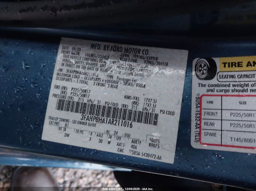 2010 FORD FUSION 2010 року Бензин, 2.5, Передній привід, vin - 3FAHP0HA1AR211016 з США