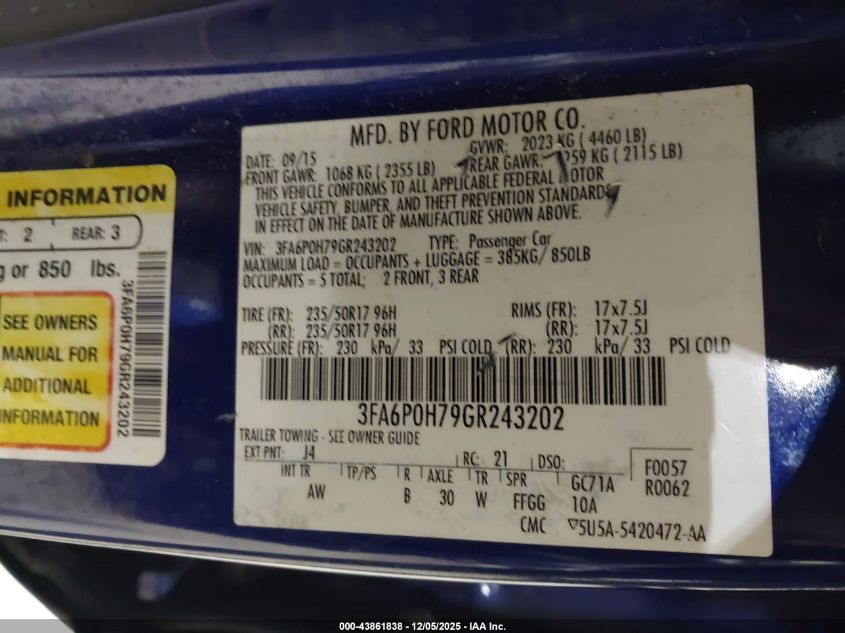 Колір СинійЦиліндри 4Привід Передній привідVIN 3FA6P0H79GR243202Стан СтаціонарноУшкодження Передня або задня AutoRIA