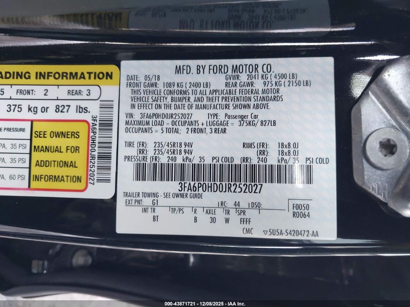 2018 FORD FUSION 2018 року Бензин, 1.5, Передній привід, vin - 3FA6P0HD0JR252027 з США