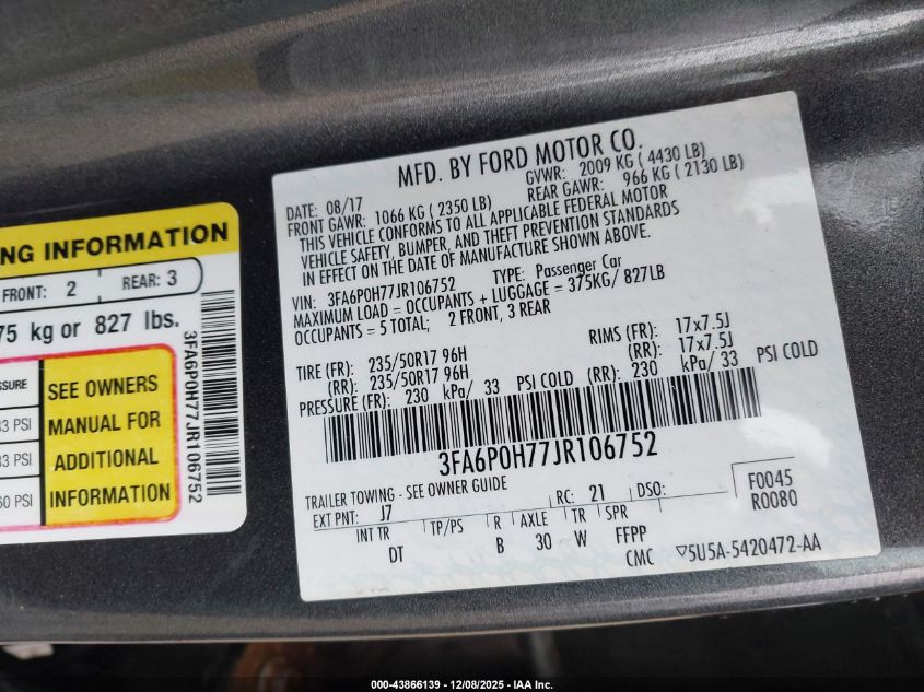 2018 FORD FUSION 2018 року Бензин, 2.5, Передній привід, vin - 3FA6P0H77JR106752 з США