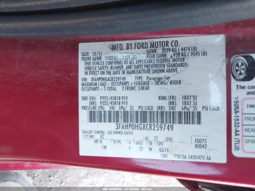 2012 FORD FUSION SE