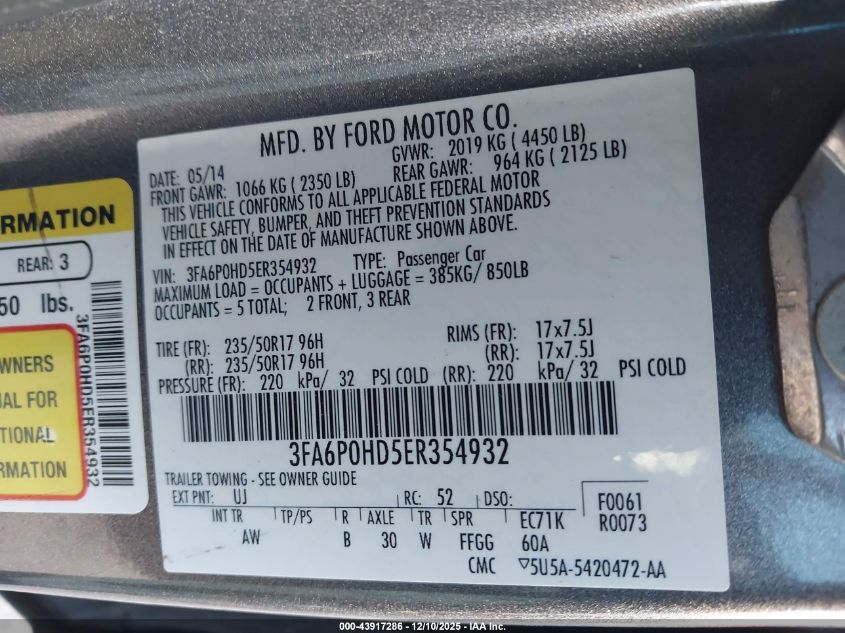 Колір СірийЦиліндри 4Привід Передній привідVIN 3FA6P0HD5ER354932Стан СтаціонарноУшкодження Передня або задня AutoRIA
