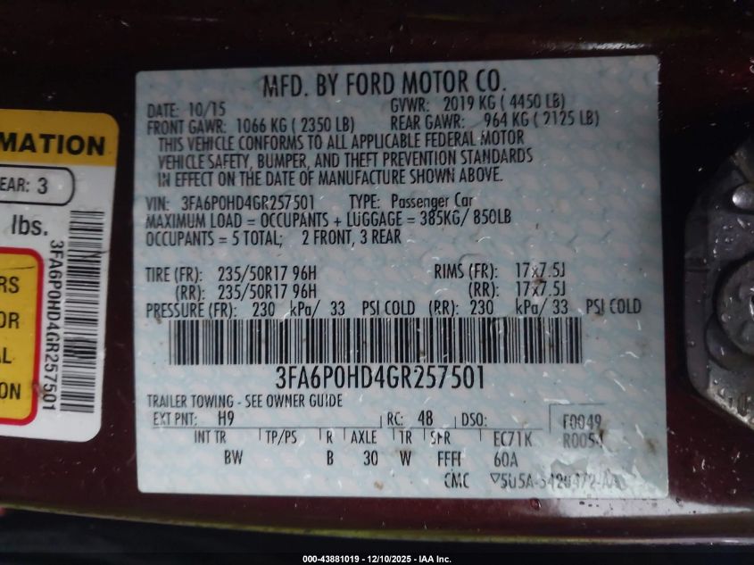 2016 FORD FUSION 2016 року Бензин, 1.5, Передній привід, vin - 3FA6P0HD4GR257501 з США