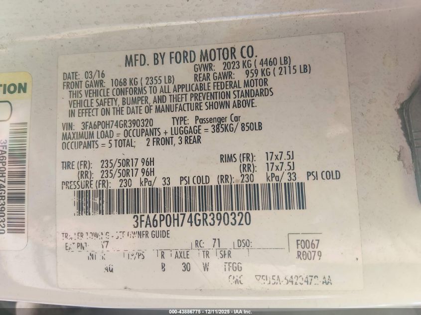 2016 FORD FUSION S