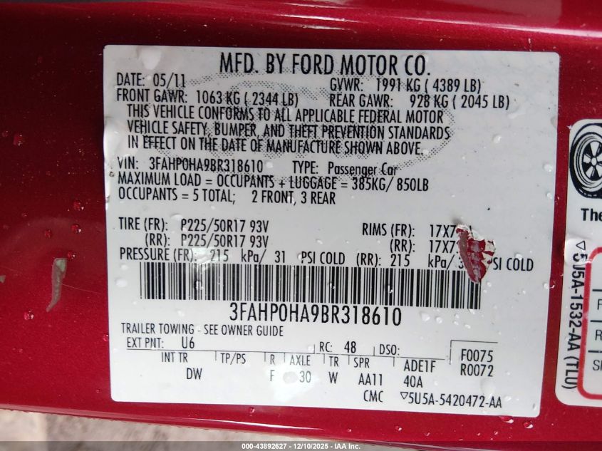 Колір ЧервонийЦиліндри 4Привід Передній привідVIN 3FAHP0HA9BR318610Стан Заводиться та їде (перевірено)Ушкодження Задня AutoRIA