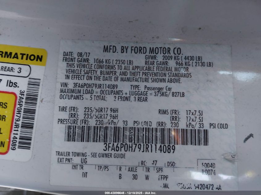 2018 FORD FUSION 2018 року Бензин, 2.5, Передній привід, vin - 3FA6P0H79JR114089 з США