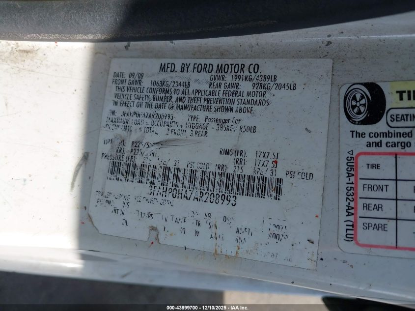 2010 FORD FUSION 2010 року Бензин, 2.5, Передній привід, vin - 3FAHP0HA7AR208993 з США