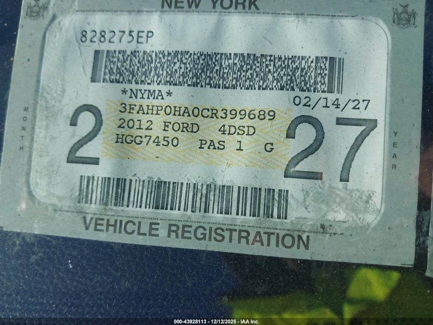 2012 FORD FUSION SE