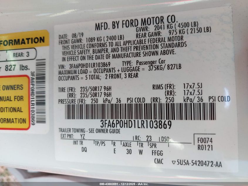2020 FORD FUSION SE
