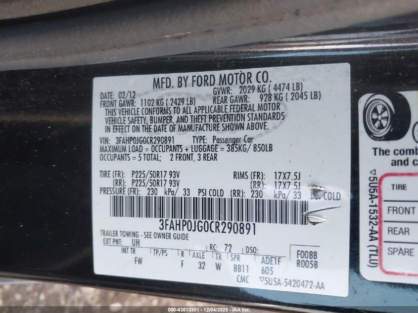 2012 FORD FUSION SE