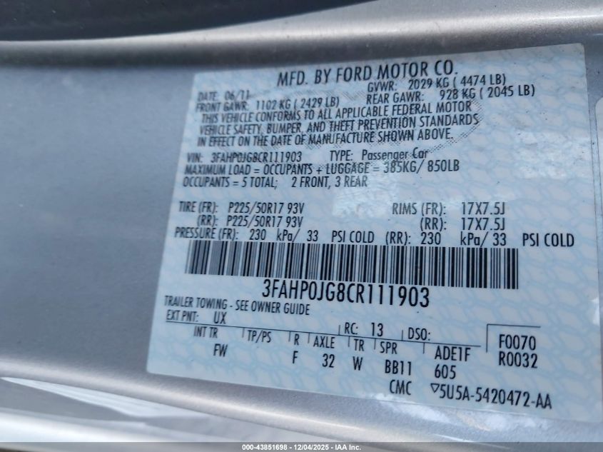 2012 FORD FUSION SE