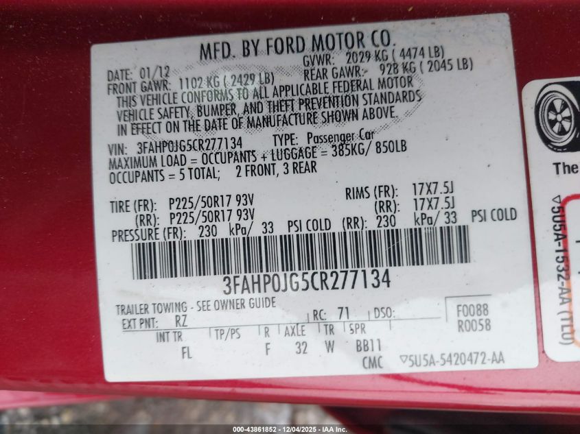 Колір ЧервонийЦиліндри 6Привід Передній привідVIN 3FAHP0JG5CR277134Стан Заводиться та їде (перевірено)Ушкодження Передня або задня AutoRIA