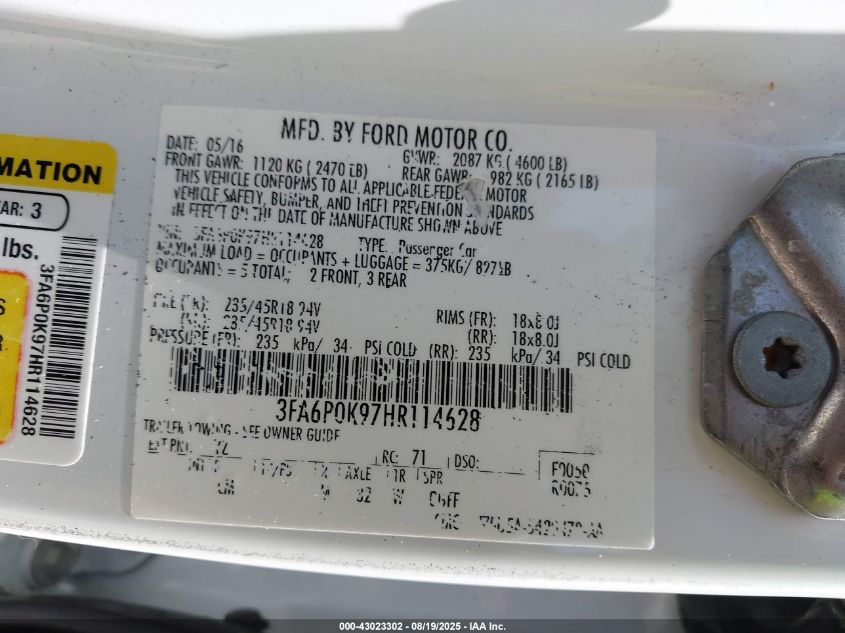 2017 FORD FUSION 2017 року Бензин, 2.0, Передній привід, vin - 3FA6P0K97HR114628 з США