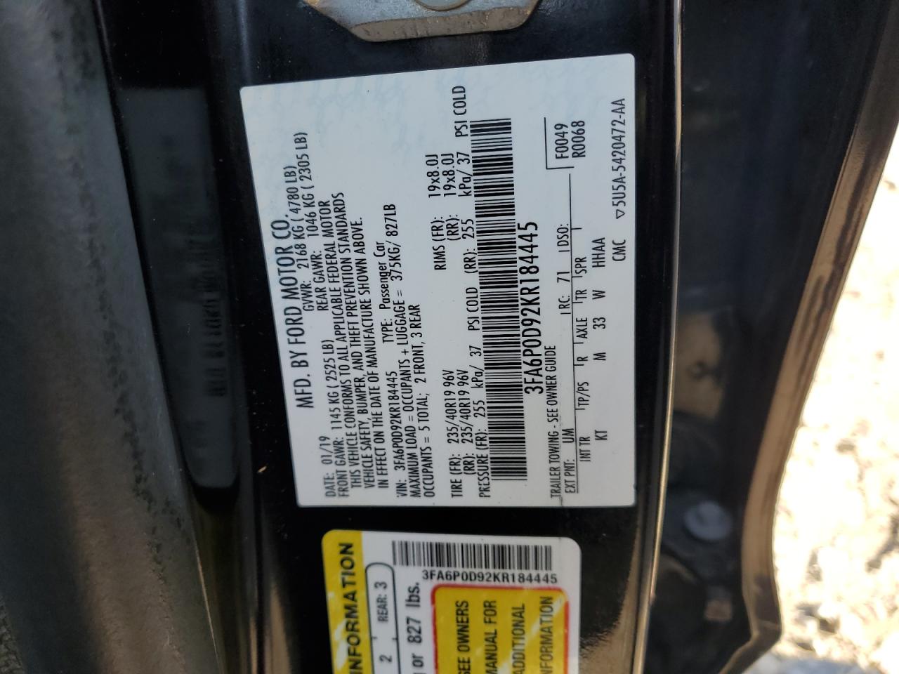 2019 FORD FUSION 2019 року Бензин, 2.0, Повний привід, vin - 3FA6P0D92KR184445 з США