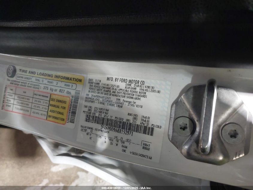 2019 FORD FUSION 2019 року Бензин, 2.0, Повний привід, vin - 3FA6P0D96KR152971 з США
