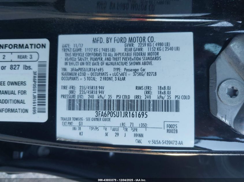 2018 FORD FUSION 2018 року Гібрид, 2.0, Передній привід, vin - 3FA6P0SU1JR161695 з США
