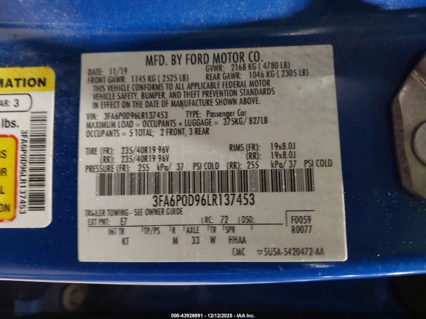 2020 FORD FUSION 2020 року Бензин, 2.0, Повний привід, vin - 3FA6P0D96LR137453 з США