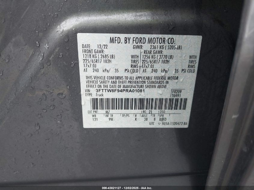 2023 FORD MAVERICK 2023 року Бензин, 2.0, Повний привід, vin - 3FTTW8F94PRA01081 з США