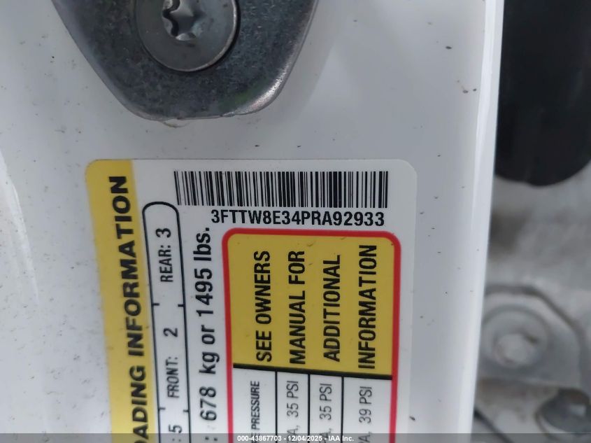 Колір БілийЦиліндри 4Привід Передній привідVIN 3FTTW8E34PRA92933Стан СтаціонарноУшкодження Задня ліваДата аукціону 2025-12-10 AutoRIA