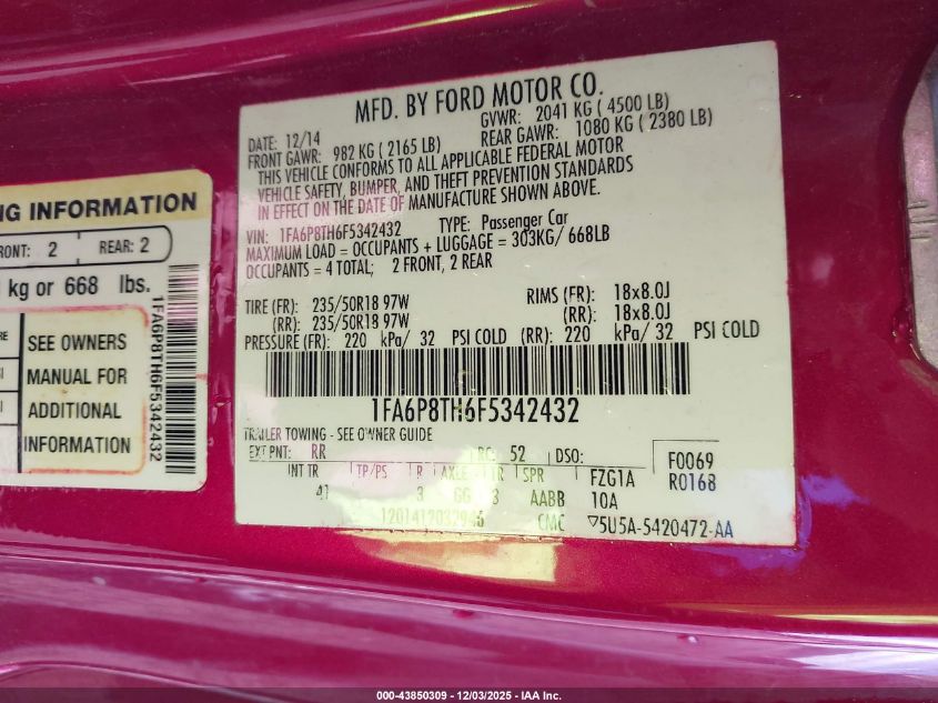 2015 FORD MUSTANG 2015 року Бензин, 2.3, Задній привід, vin - 1FA6P8TH6F5342432 з США
