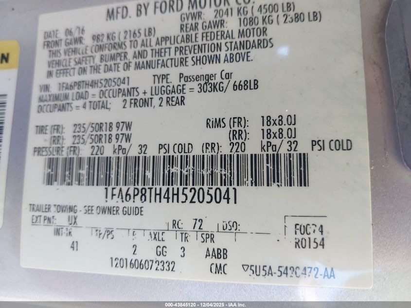 Колір СрібнийЦиліндри 4Привід Задній привідVIN 1FA6P8TH4H5205041Стан Заводиться та їде (перевірено)Ушкодження Ліва сторона AutoRIA