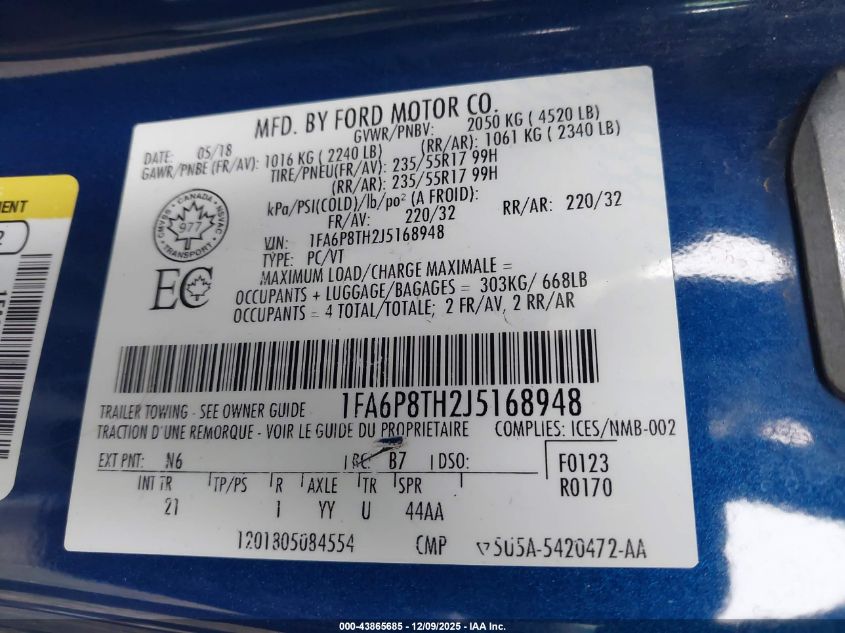 Колір СинійЦиліндри 4Привід Задній привідVIN 1FA6P8TH2J5168948Стан ЗаводитьсяУшкодження Перекидання AutoRIA
