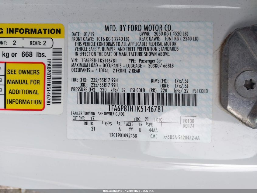 Колір БілийЦиліндри 4Привід Задній привідVIN 1FA6P8TH1K5146781Стан Заводиться та їде (перевірено)Ушкодження Передня права AutoRIA