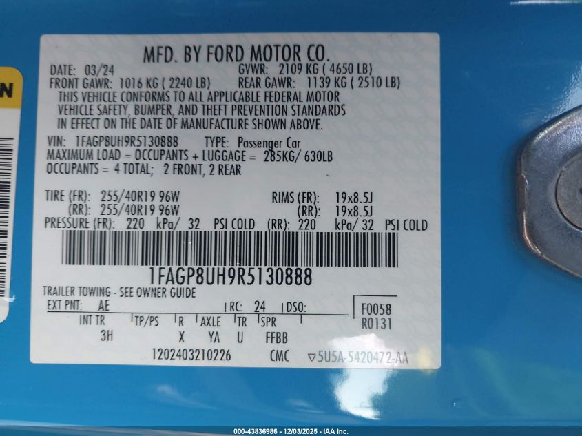 2024 FORD MUSTANG 2024 року Бензин, 2.3, Задній привід, vin - 1FAGP8UH9R5130888 з США
