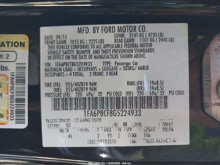 2016 FORD MUSTANG