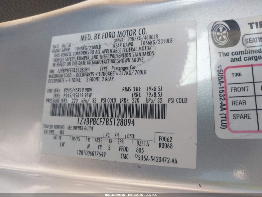 Колір СрібнийЦиліндри 8Привід Задній привідVIN 1ZVBP8CF7B5128094Стан Заводиться та їде (перевірено)Ушкодження Передня або задня AutoRIA