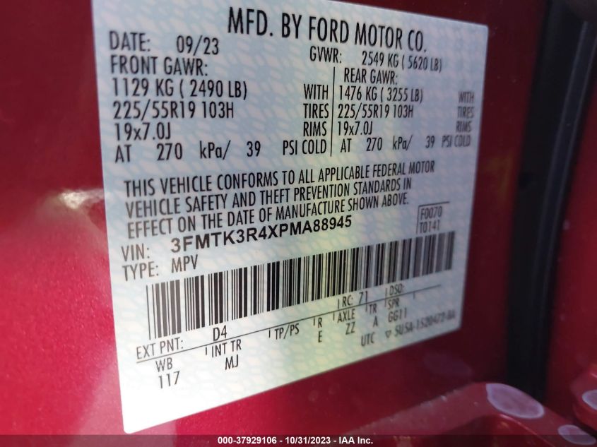 2023 FORD MUSTANG MACH-E 2023 року Електричний, 0.0, Задній привід, vin - 3FMTK3R4XPMA88945 з США