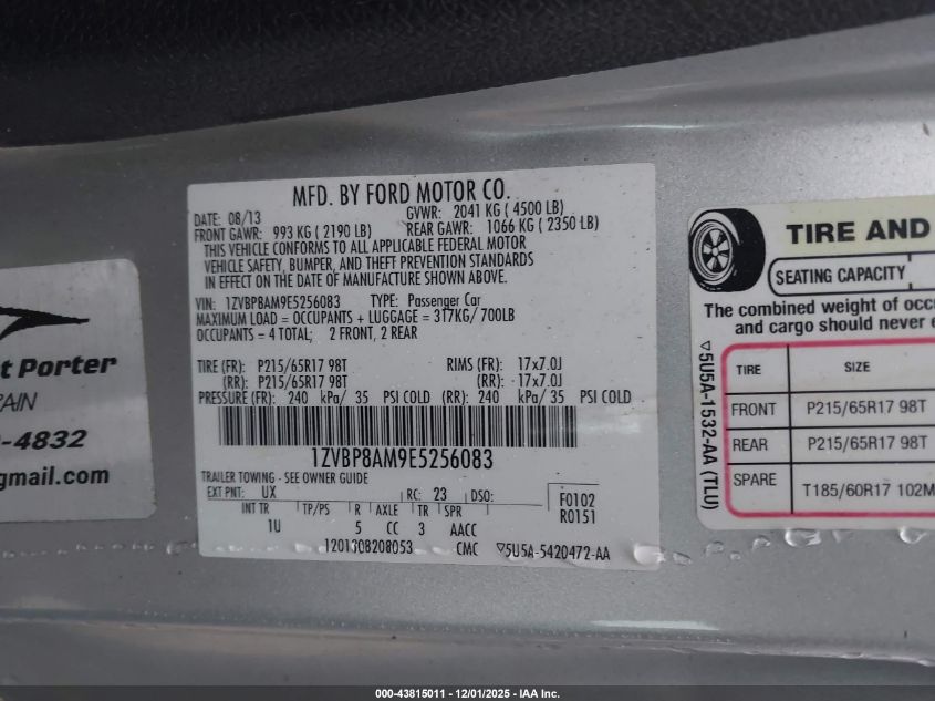 Колір СрібнийЦиліндри 6Привід Задній привідVIN 1ZVBP8AM9E5256083Стан Заводиться та їде (перевірено)Ушкодження Задня AutoRIA
