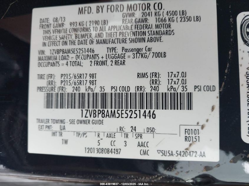 Колір ЧорнийЦиліндри 6Привід Задній привідVIN 1ZVBP8AM5E5251446Стан Заводиться та їде (перевірено)Ушкодження Передня або задня AutoRIA