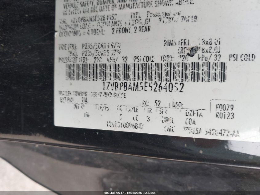 Колір ЧорнийЦиліндри 6Привід Задній привідVIN 1ZVBP8AM5E5264052Стан Заводиться та їде (перевірено)Ушкодження Права сторона AutoRIA