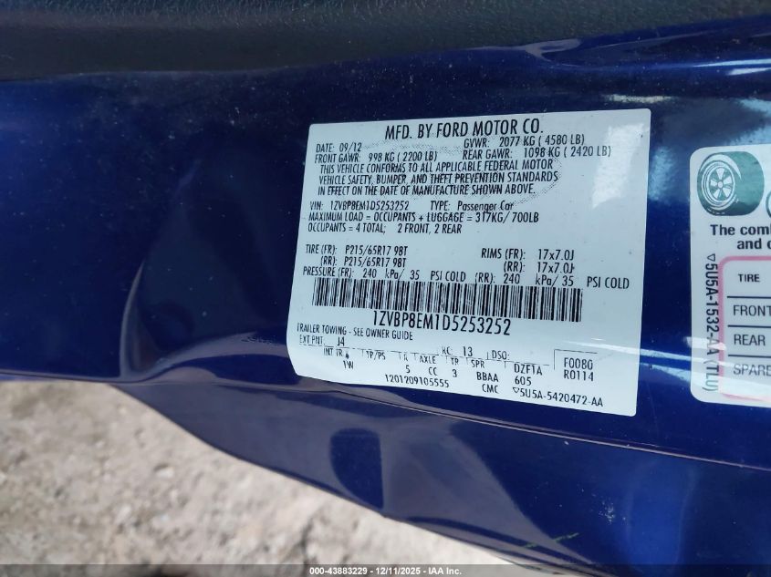 Колір СинійЦиліндри 6Привід Задній привідVIN 1ZVBP8EM1D5253252Стан Заводиться та їде (перевірено)Ушкодження Немає AutoRIA