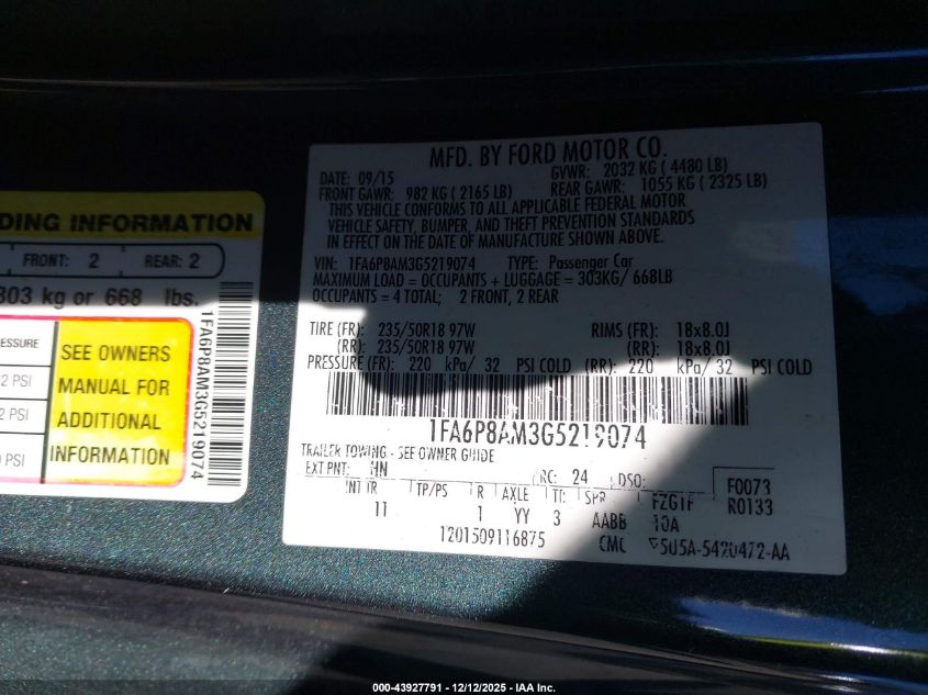 2016 FORD MUSTANG