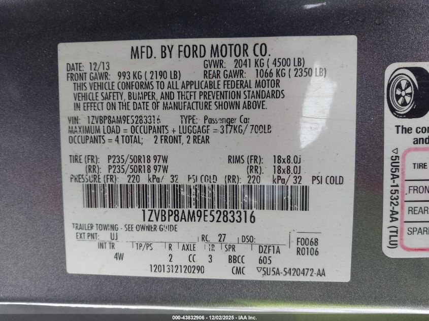 Колір СірийЦиліндри 6Привід Задній привідVIN 1ZVBP8AM9E5283316Стан СтаціонарноУшкодження Пожежа двигуна AutoRIA
