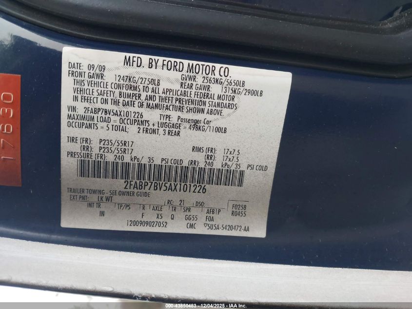 2010 FORD POLICE INTERCEPTOR 2010 року Бензин, 4.6, Задній привід, vin - 2FABP7BV5AX101226 з США