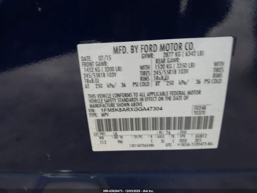 Колір СинійЦиліндри 6Привід Повний привідVIN 1FM5K8ARXGGA47304Стан ЗаводитьсяУшкодження Передня ліва