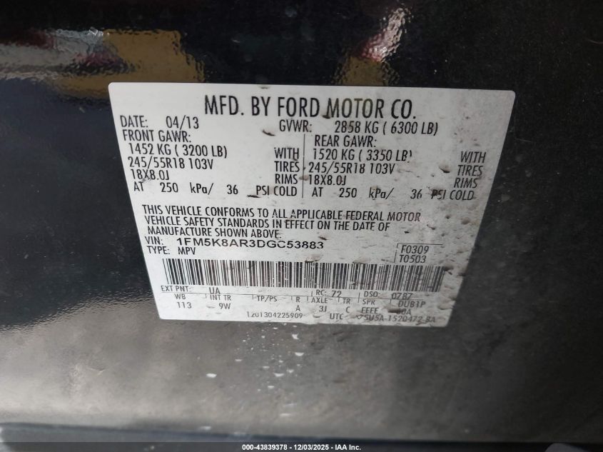 Колір ЧорнийЦиліндри 6Привід Повний привідVIN 1FM5K8AR3DGC53883Стан Заводиться та їде (перевірено)Ушкодження Передня або задня